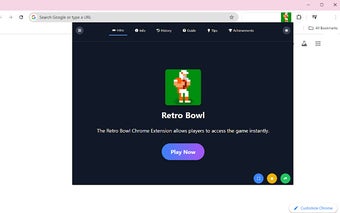 ส่วนขยาย Chrome Retro Bowl ช่วยให้ผู้ใช้สามารถเล่น Retro Bowl ได้โดยตรงจากแถบเครื่องมือเบราว์เซอร์ของพวกเขา มอบประสบการณ์กีฬาที่เต็มไปด้วยความคิดถึงเพียงแค่คลิกเดียว ส่วนเสริมนี้ออกแบบมาสำหรับผู้ที่ชื่นชอบการเล่นฟุตบอลคลาสสิก โดยให้วิธีที่น่าสนใจในการเพลิดเพลินกับเกมโดยไม่มีสิ่งรบกวน ส่วนขยายนี้โหลดเกมในหน้าต่างป๊อปอัพ ช่วยให้สามารถเล่นได้อย่างรวดเร็วไม่ว่าจะอยู่ที่โรงเรียน ที่ทำงาน หรือที่บ้าน ทำให้สามารถเข้าร่วมเล่นได้ง่ายทุกเมื่อ